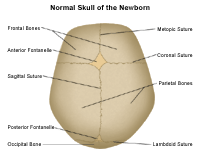 A fontanelle is the space between the bones of a baby's skull where the sutures intersect. There are 2 fontanelles. These spaces are covered by tough membranes (dura) that protect the underlying soft tissues and brain. The fontanelles include: