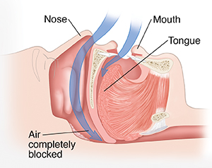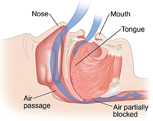 If you’ve ever had a stuffed-up nose, you know the feeling of trying to breathe through a very narrow passageway. This is what happens in your throat when you snore. While you sleep, structures in your throat partly block your air passage. This makes the passage narrow and hard to breathe through. This can interrupt sleep. When this happens, it is called obstructive sleep apnea.