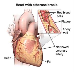 Atherosclerosis. A gradual clogging of the arteries by fatty materials and other substances in the blood stream. It can lead to problems in the wall motion or pumping function of your heart.